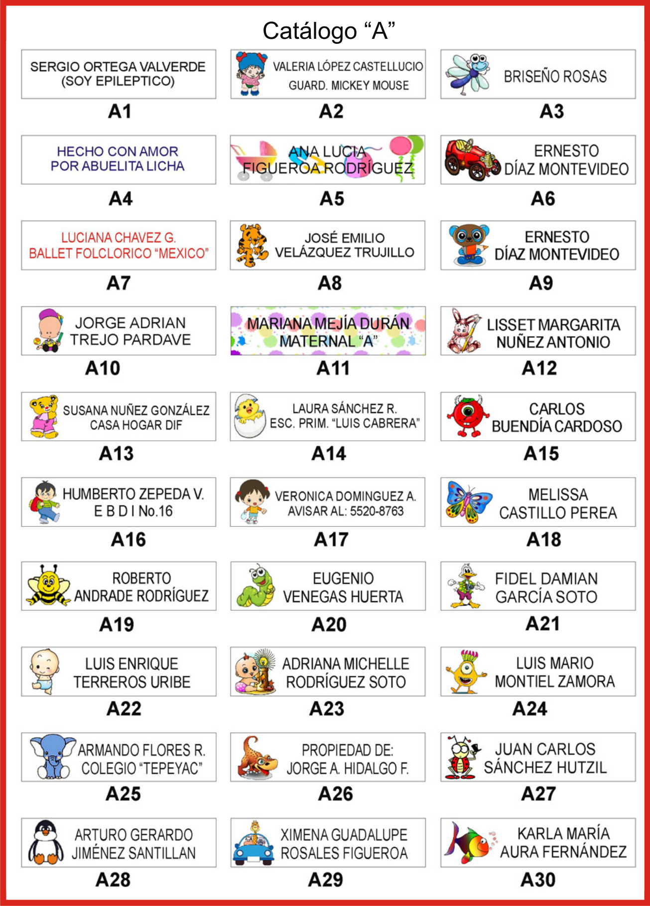 Somos una empresa con 20 años de experiencia, especializada en la fabricación de etiquetas termoadheribles para marcar ropa de la más alta calidad. Garantizamos los mejores materiales en etiquetas para marcar ropa y alta durabilidad ya que son 100% tela, no se despegan ni se despintan, son de tela suave y no rozan la piel de sus hijos. Contamos con el diseño que usted necesita para sus prendas, así como también con los mejores precios y entregas a domicilio. |