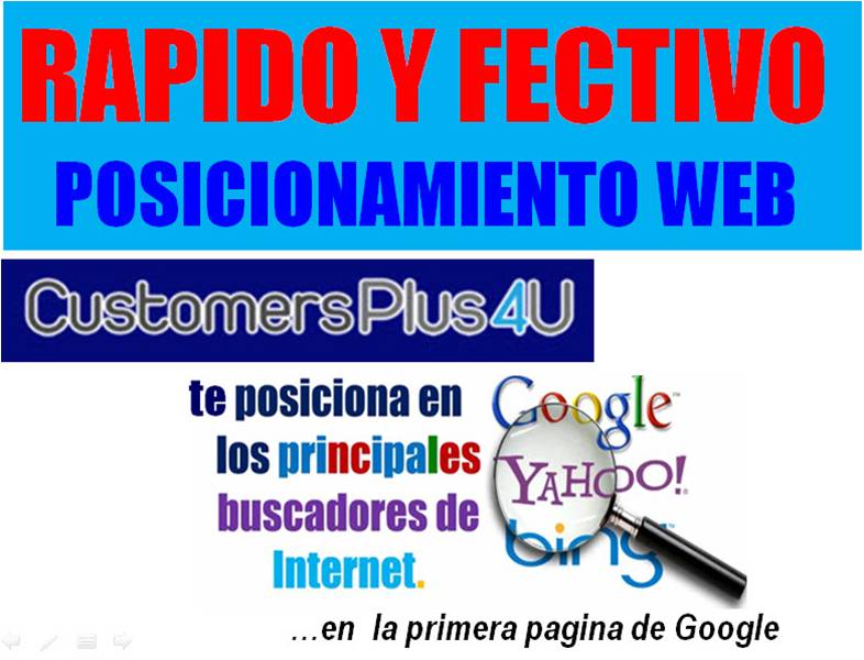 Customersplu4u hace posicionamiento web efectivo y rapido, y en pocos dias hace visible tu negocio en la primera pagina de Google.